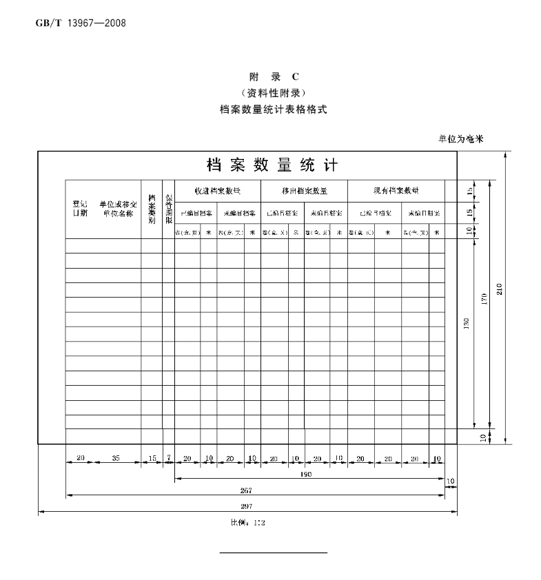 5.2.5档案数量统计表格图 文区尺寸规格为267 mmX 170 mm(长X宽)。